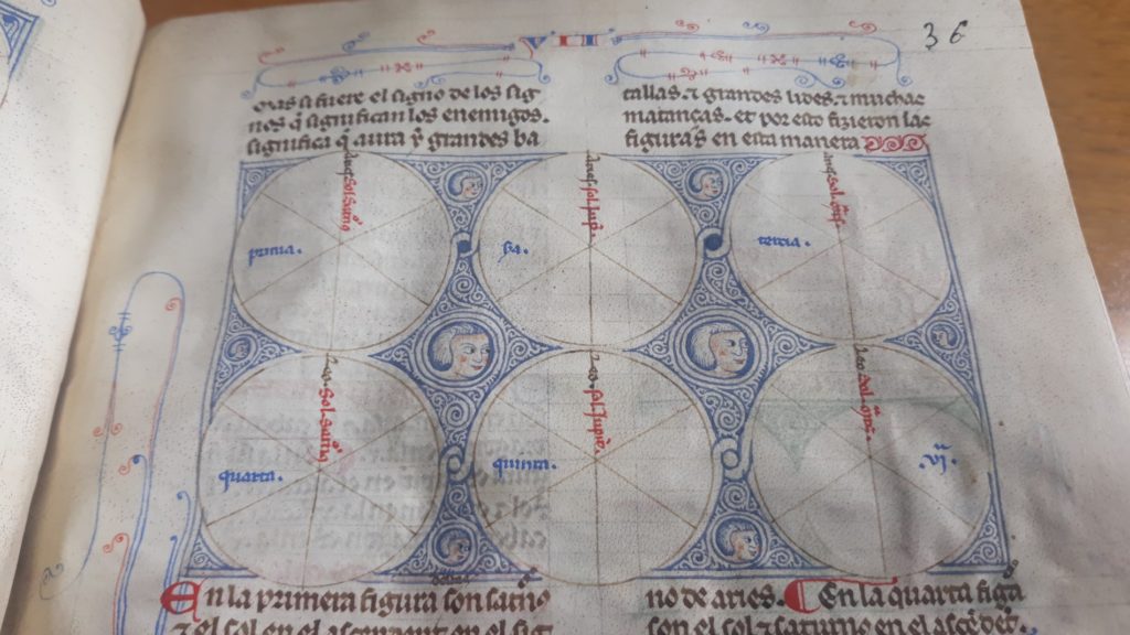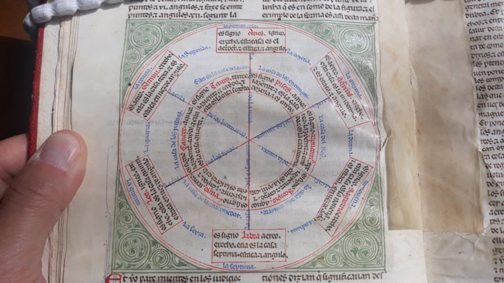 Hoy también es Purim, una de las fiestas más alegres del calendario judío, que este año coincide con la finalización de un precioso manuscrito astrológico, quizá el primero escrito es castellano, que refleja a la perfección la cultura local con proyección global de aquel Toledo medieval en el que lo islámico, lo judío y lo cristiano daban forma juntos a brillantes proyectos de renovación científica como la -mal- llamada Escuela de Traductores. Judíos como Yehuda ben Mosé ha-Kohen, a quien debemos las traducciones y ediciones de algunas de las más geniales obras de magia y astrología clásica y medieval, como el Libro de las Cruzes.